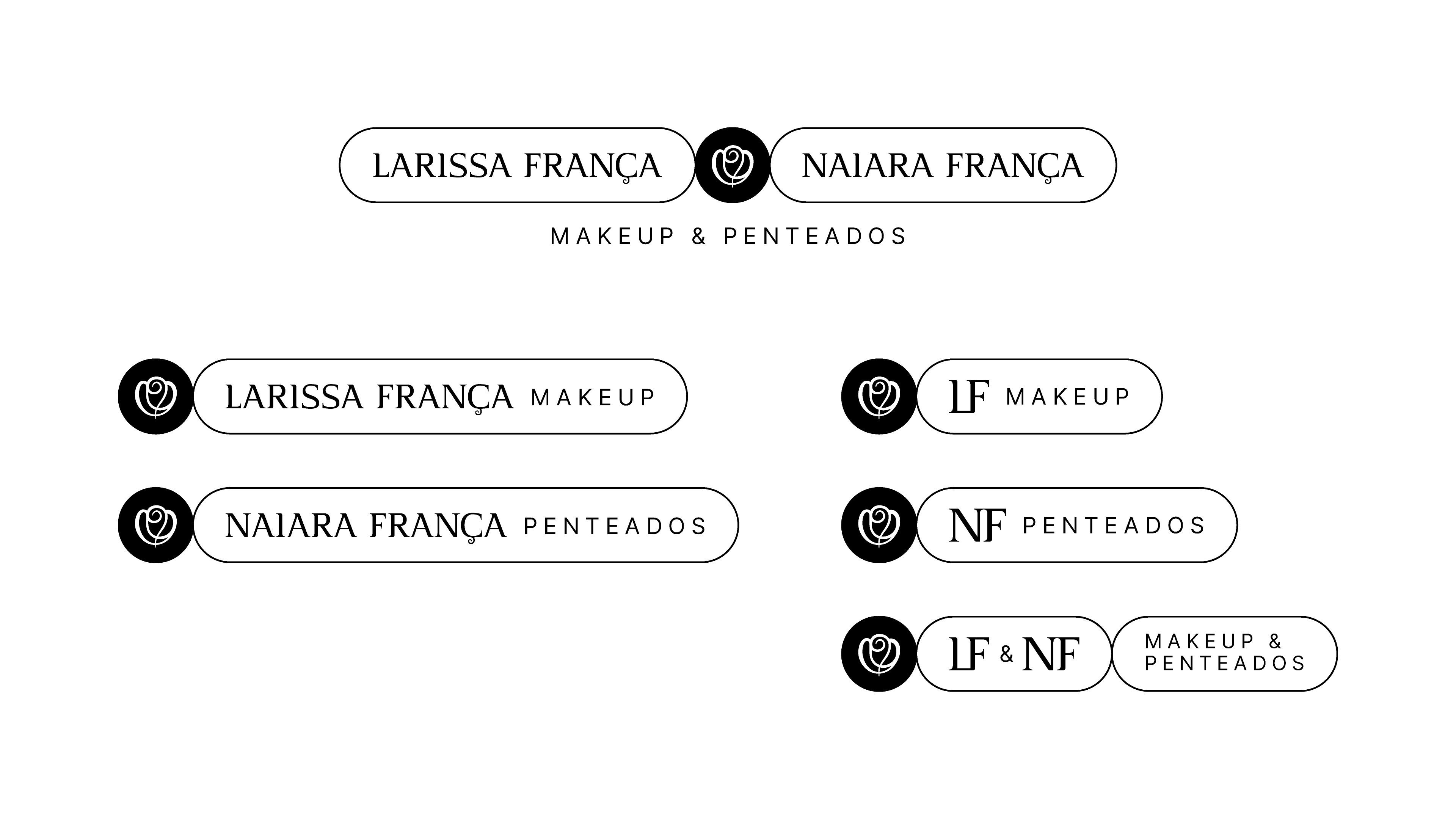 During the Diagnosis and the Briefing step, we noticed the need for an identity system having the atelier and their personal brands, regarding a product line in the near future as well. Consequently, the system has multiple layers, with a brand architecture for the business holding and its personal brands, all connected by the same creative concept and exclusive letterforms, unifying and elevating communication across all identities (atelier, makeup, hairstyle, and future products).