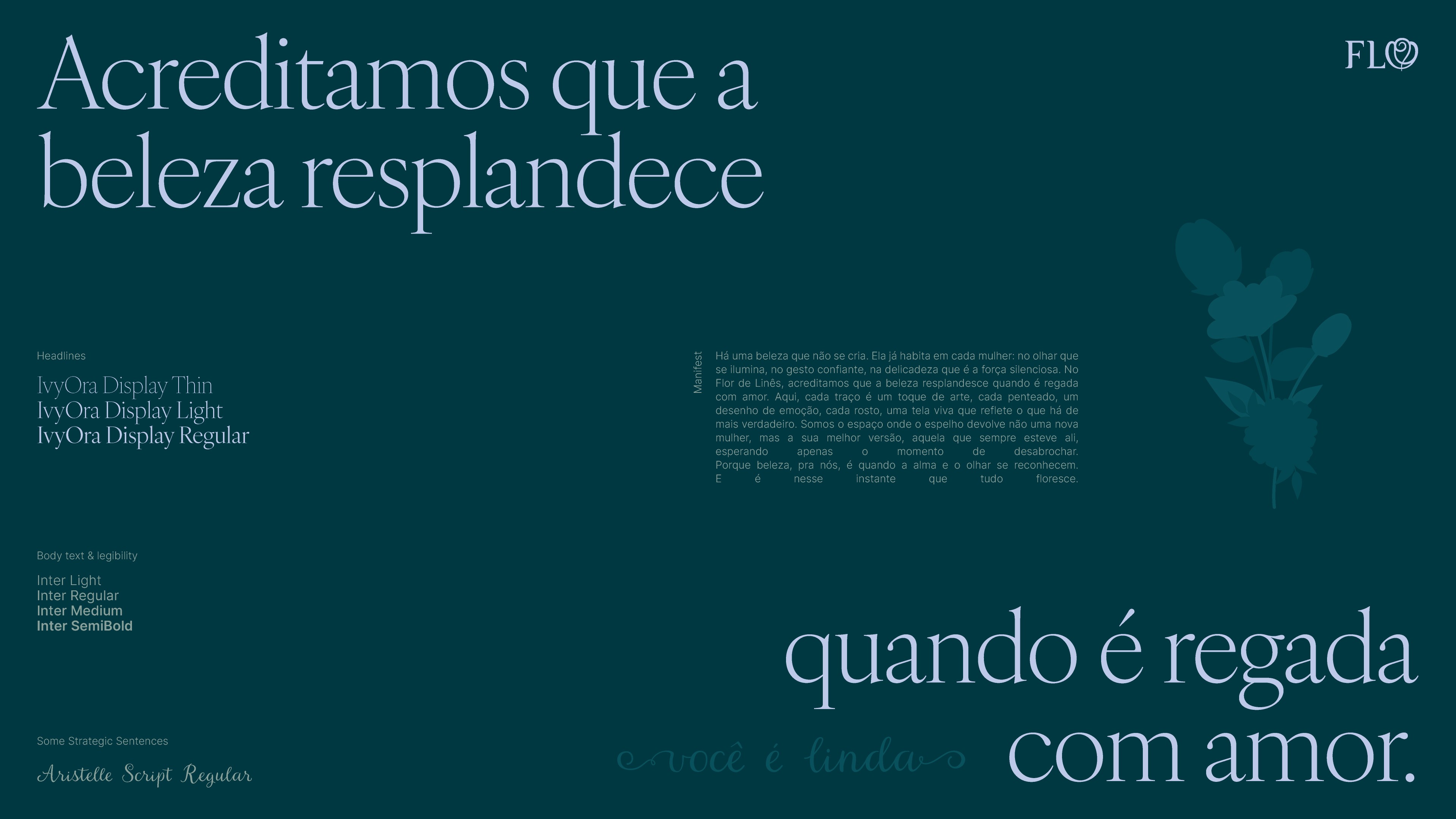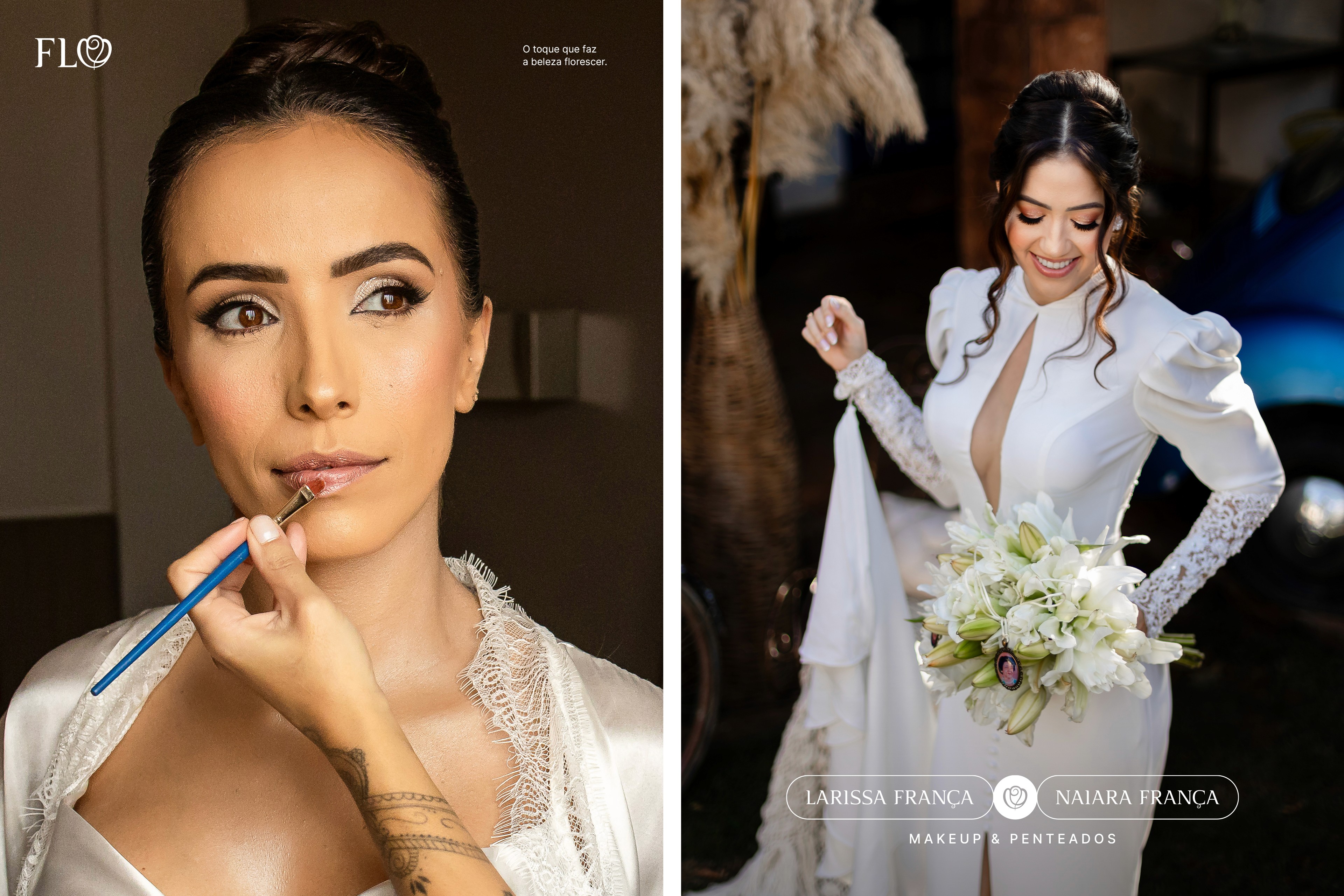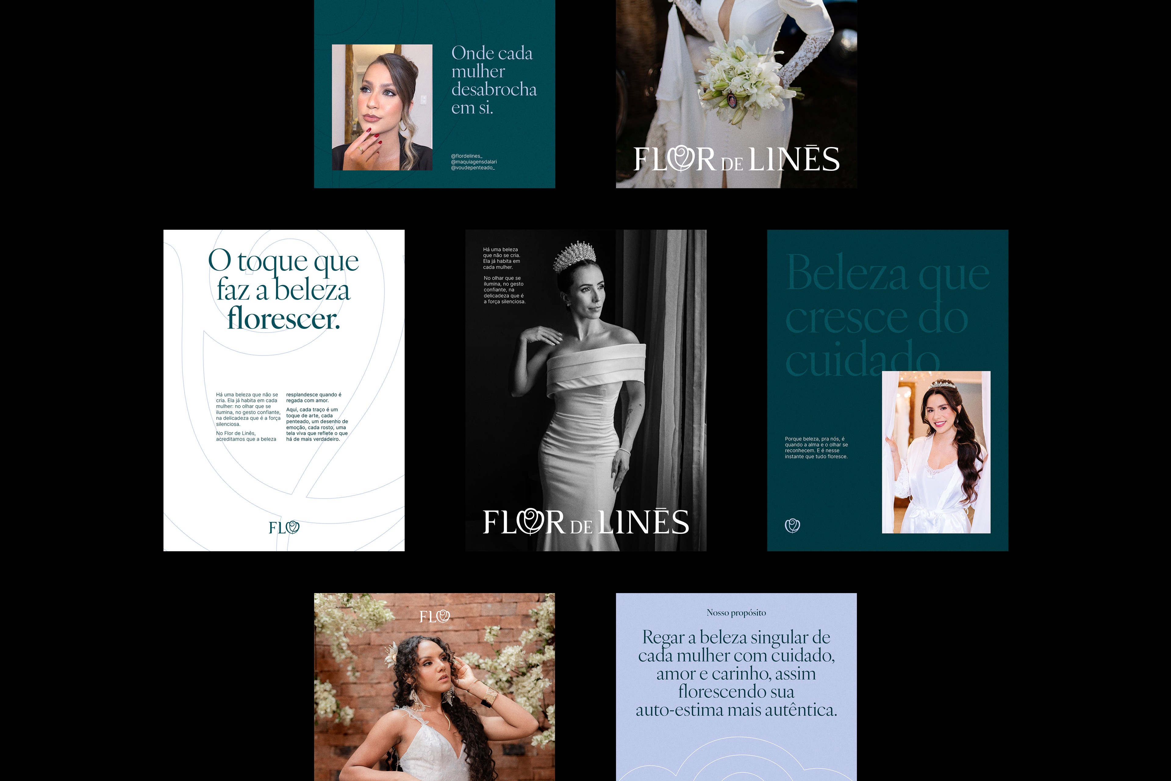 Invited by two sisters, founders and work partners, to develop the identity system for Flor de Linês, an atelier in Sete Lagoas, Minas Gerais, Brazil, that crafts refined makeups and hairstyles.